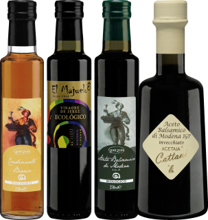 Wo grosser Wein entsteht, ist grosser Essig nicht weit. Traditionsreiche Bio-Manufakturen in Italien und Spanien verwandeln beste Trauben in edle Essige – mit handwerklicher Sorgfalt und viel Geduld. Das schmeckt man in jedem Tropfen.